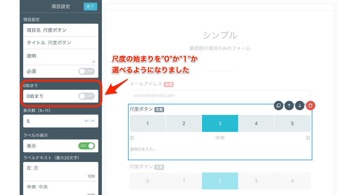 「1から始まる尺度にしたい」というお声を反映して“0始まり”を選択できるように機能改善を行いました。